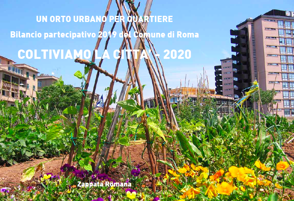 il progetto “Coltiviamo la città, un orto per quartiere” presentato da Zappata Romana, che prevede di realizzare almeno cento orti nella città di Roma, è il secondo progetto più votato a Roma nel Bilancio Partecipativo 2019 da attuarsi nel 2020 con un budget di 550 mila euro.