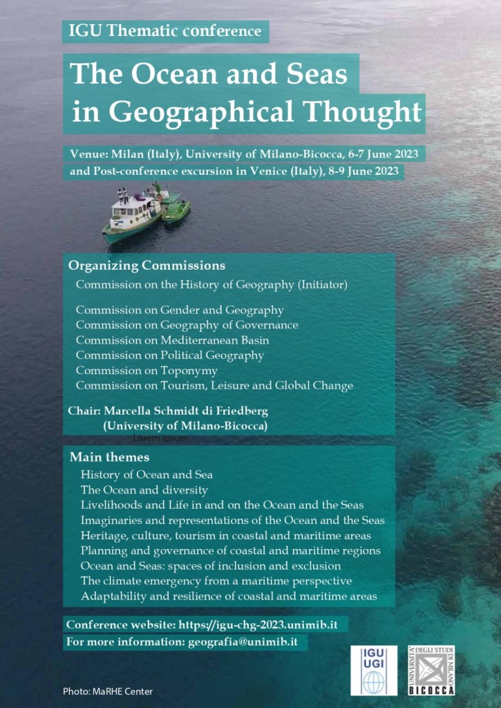 The next IGU Thematic conference on “The Ocean and Seas in Geographical Thought” will be held at the University of Milano-Bicocca, 6-7 June 2023.