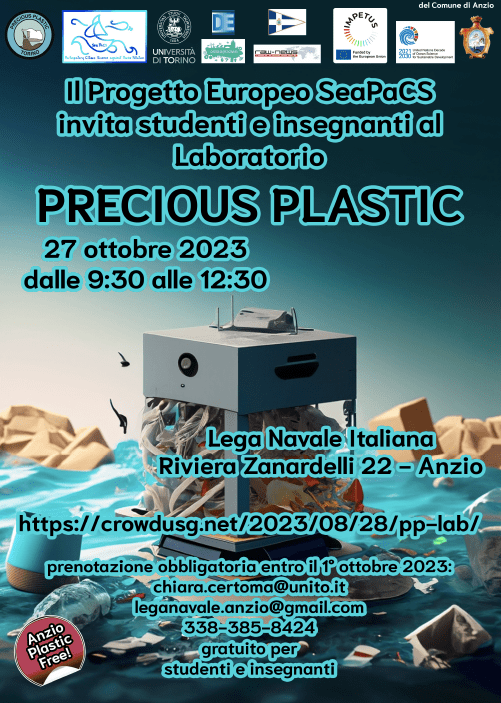 Il Progetto Europeo SeaPaCS – Cittadin*-Scienziat* contro la Plastica in Mare, in collaborazione con PreciousPlasticTorino, invita studenti e insegnanti di Anzio al Laboratorio PRECIOUS PLASTIC.