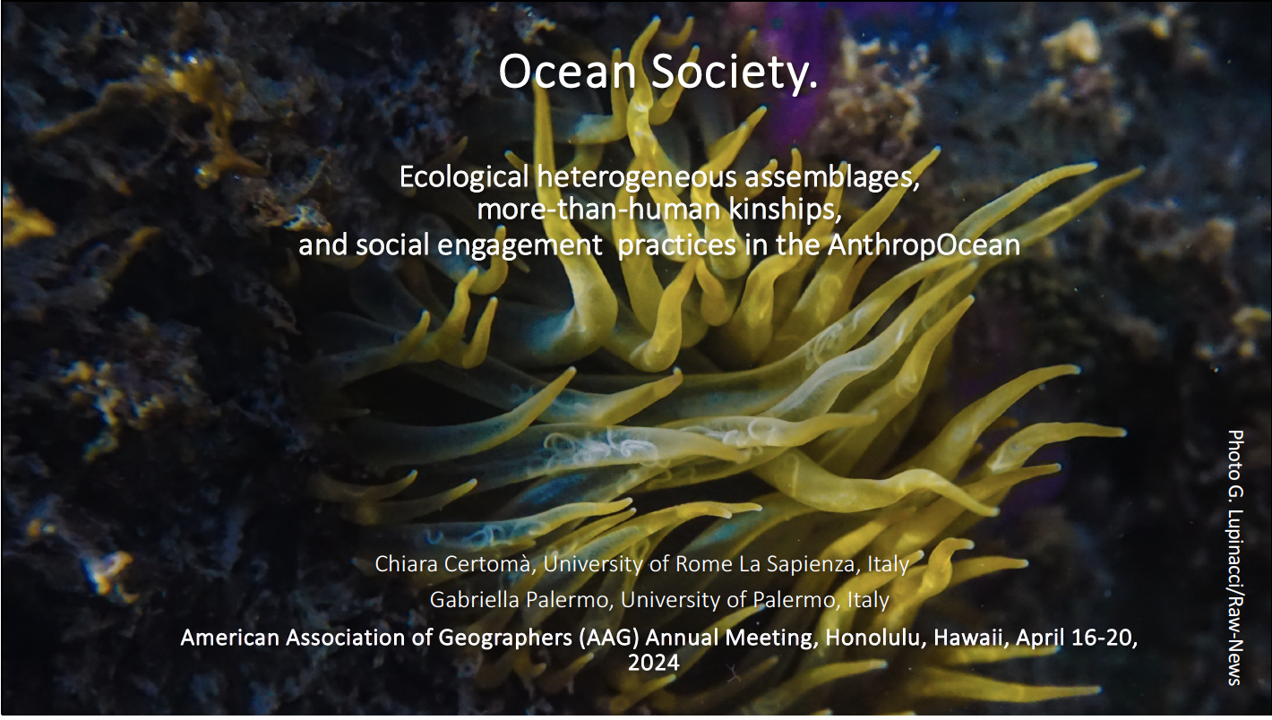 While it is true that the ocean as a space has long remained marginal within the geographical discipline, more recently a sea-focused knowledge is emerging from multiple perspectives building what is now known as the Oceanic Turn (Anderson and Peters 2014; DeLoughrey 2017; Peters et al. 2023). This increasing interest is devoted to the multiple social spatialities that emerge from the ocean’s liquid materiality; the more-than-human kins that occur at the sea (Haraway,2016); the turbulences, liquidities and temporalities of the ocean (Steinberg and Peters, 2013); and the multiple forms of human societal engagement and participation in recombinant marine ecologies (Brennan,2022; Buchan et al., 2023). Pivotal, in these Critical Ocean Geographies, is the work of geographers such as Philip Steinberg (2001) and Kimberley Peters (2010) and their more-than-wet ontologies (Steinberg and Peters 2019): the ocean materiality, excessive and extensive, can help us to think-with other politics, other possible futures, new ways of living and dying.