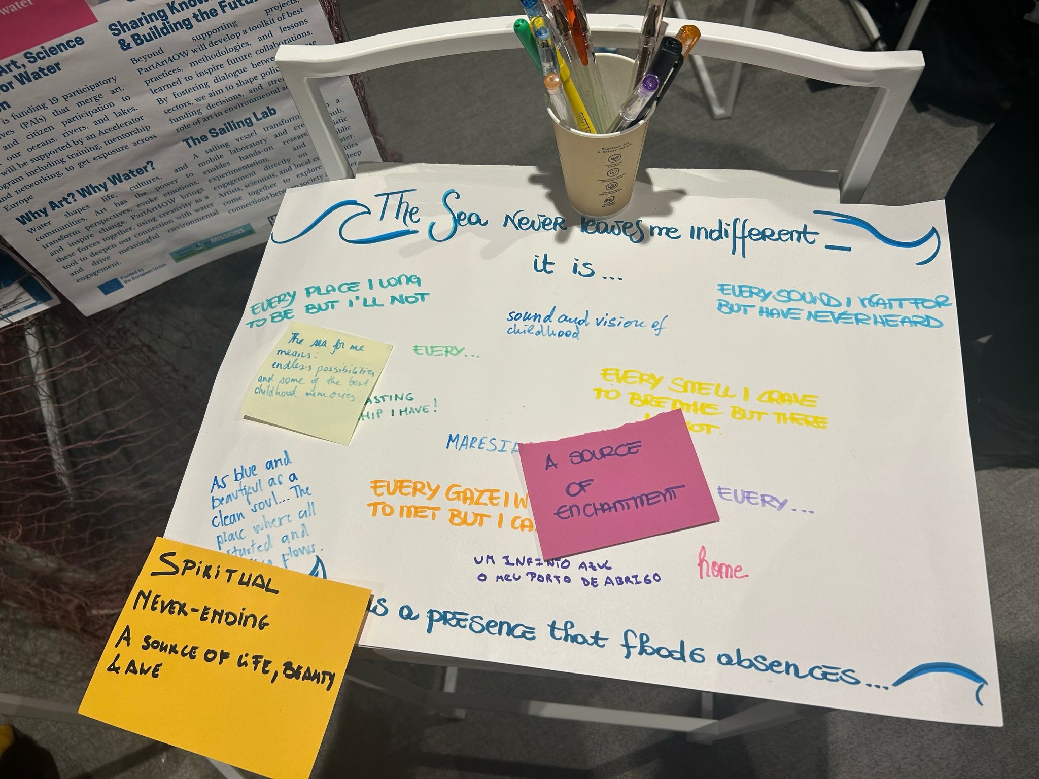 The exhibition presents the result of an artistic photographic reportage that explores the multiple, diversified and unexpected forms of the emotional connections between society and the Ocean, whose strengthening is promoted by the EU Mission Starfish. The exhibition has been realised for the kick-off of the project PartArt4OW, and focuses on the current transformation of human society’s relationship with the sea and the paradigm change toward a more inclusive and systemic consideration of global ocean socio-ecological relationships, taking into account the ocean’s social and cultural value.The attendees are engaged through the “hand-on-art” activity. This entails that pictures displayed are available for interactive and creative manipulation by attendees. By cutting, pasting, drawing on them, commenting, and reassembling imagines we want attended to describe their feeling about the compositions of materialities, imaginaries and forces operating in the liquid marine space to reconceive our common belonginess to the ocean because the physicality of the artistic pieces stimulates the relationship and invites reflection. During the exhibition, the PartArt4OW PI is talking with attendees, posing questions and listening suggestions for the project. Attendees will have the possibility to write, design, sketch, note on a colourful paper board why is the Ocean important to them from an emotional perspective and vote the picture that best represent their feeling.
