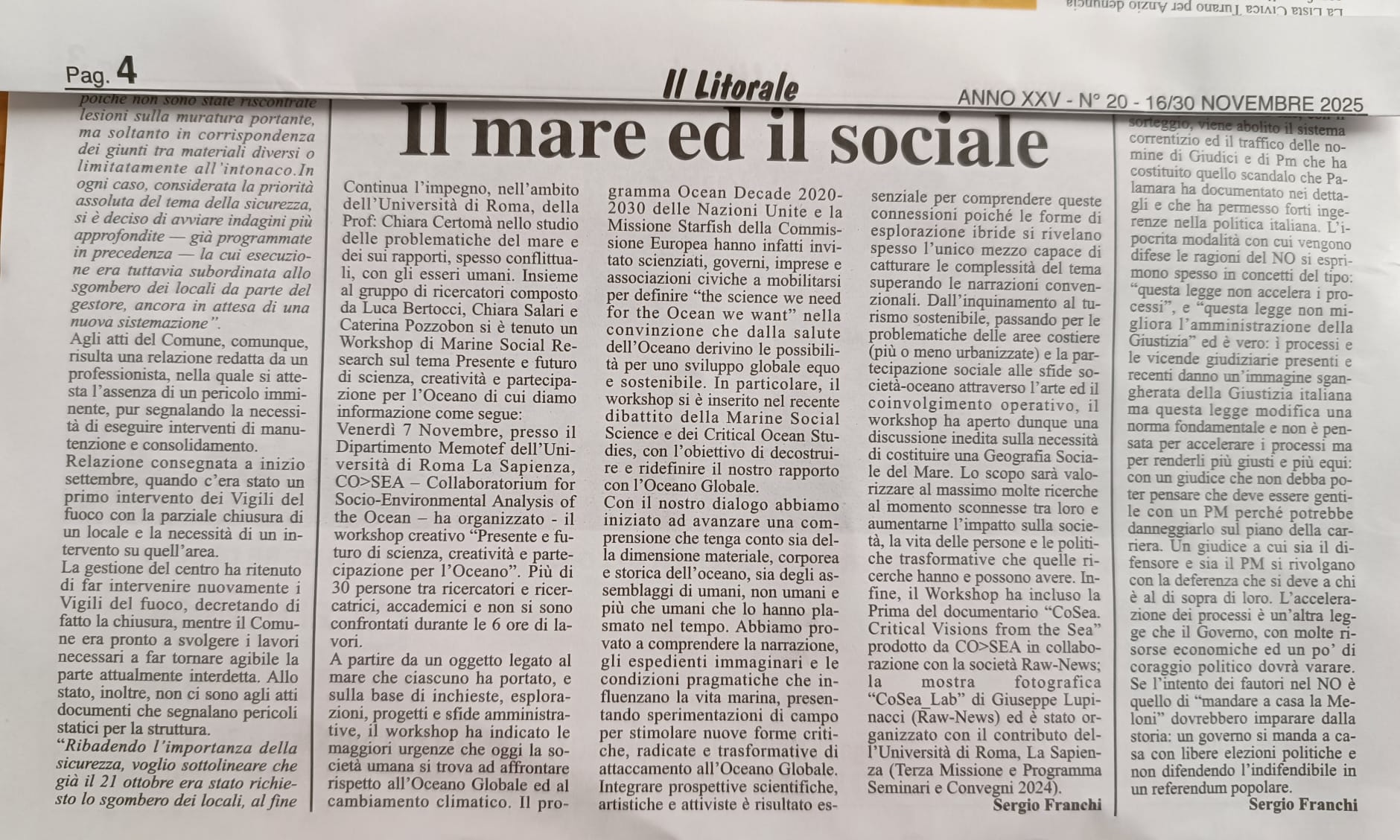 During the workshop, the video-documentary “CO>SEA Critical Visions from the Sea” by Federico Fornaro and Giuseppe Lupinacci, Raw-News is premiered.
