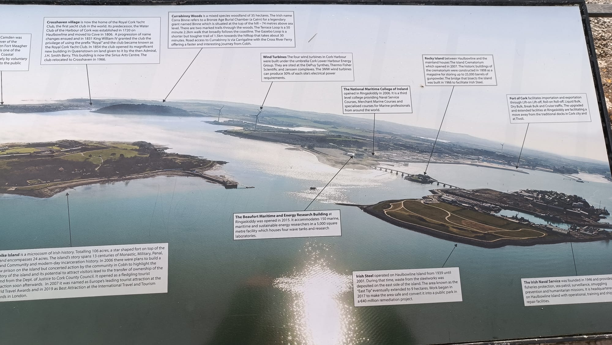 Although local residents describe Cobh (particularly the waterfront area) as a very pleasant place to live, a site visit, news reports, and a preliminary review of the scientific literature suggest that it is essential to consider the entire Cork Harbour area to understand its past transformations and current challenges. For example, the presence of an oil refinery and related traffic in the last two years has resulted in occasional oil spills, polluting the water supply in one case and causing massive fish kills in another; some plans to build waste treatment plants have been opposed by local committees due to potential environmental and health consequences; the progressive privatization of all port infrastructure, both commercial and recreational, and shipbuilding activities, by non-local companies has led to a gradual and complete abandonment of maritime-related work by the local population; among these, it is also noteworthy to note the lack of fishing activity (completely in the Cobh area), which has significantly shifted to the west coast of Ireland, and the loss of related skills (the last fishing boats are used only for recreational purposes). Furthermore, increasing problems in accessing housing have been reported due to a progressive increase in property prices (common throughout the country), and the lack of activity during the winter period linked to a lack of career opportunities and development opportunities for young people (compared to a significant influx of summer tourists, partly linked to cruise activity), as well as an increase in car traffic and the almost total lack of maritime transport between port areas.