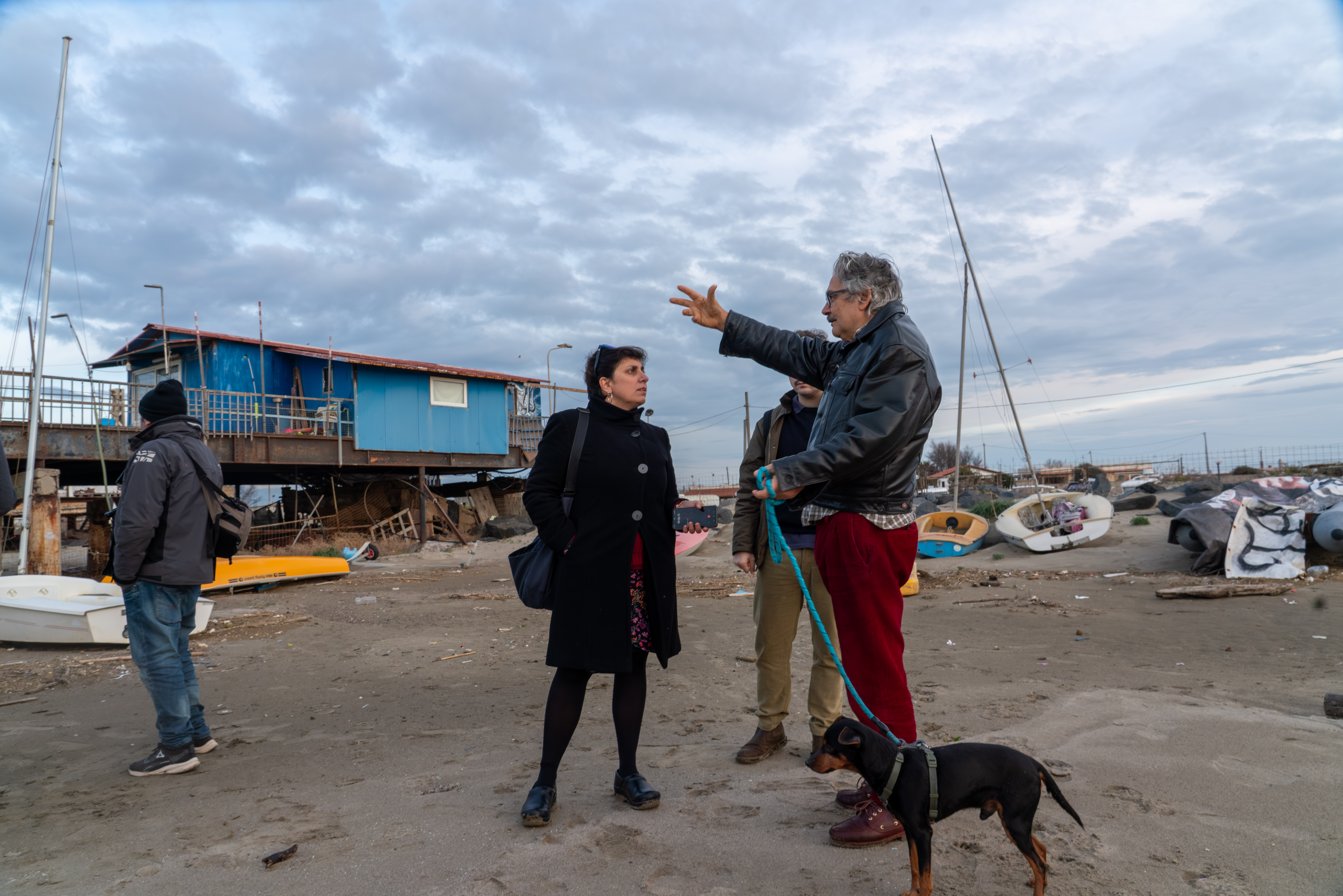 We interviewed local activitists of the Tavoli del Porto (David), No Porto (Lorenzo and Mariagrazia), Comitato FuoriPISTA (Antonio) during transect walks, documented the interventions (notably the wall impeding access from routes to the water) in the public shores operated by the private companies Fiumicino Waterfront; and discussed the state of the project for the creation of a massive touristic and cruise port in the area, the multiple criticalities, the impact on local area and communities.