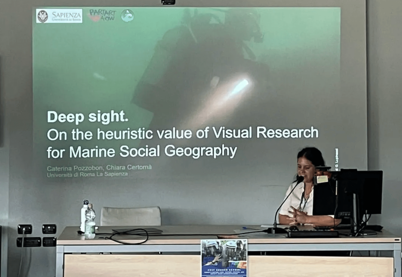 - 5 sep 2025 Caterina Pozzobon presented at the Congresso Geografico Italiano University of Turin, the contribution “Deep sight. On the heuristic value of Visual Research for Marine Social Geography” on the use of visual methods in the participatory research of CO>SEA.