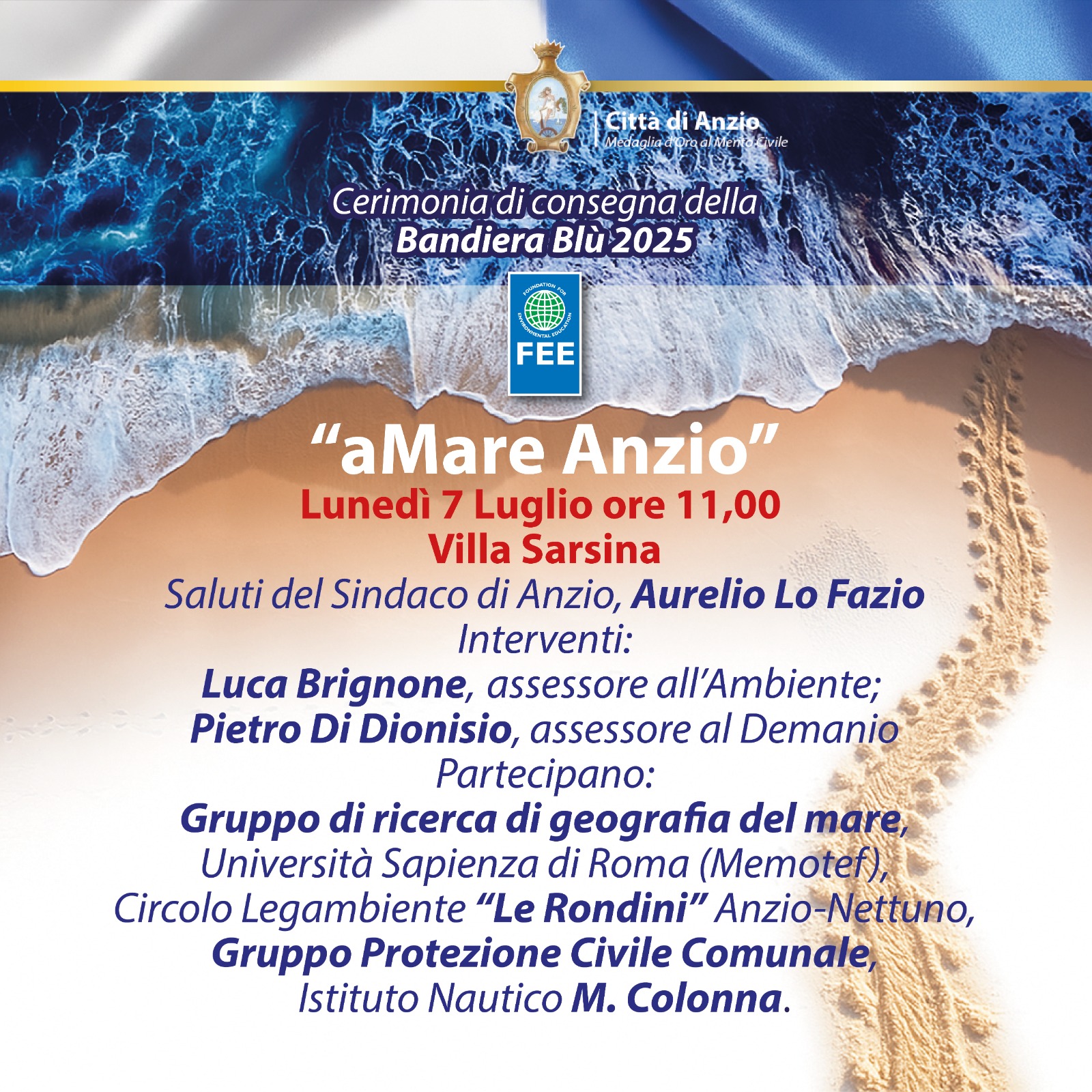 - 7 jul 2025 Participation to the roundtable “aMare Anzio” , Anzio City Council