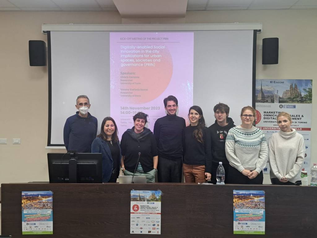 The core team of the PRIN Project “DSInnovators,” including Chiara Certomà, Venere Sanna, Samantha Cenere, Cristina Viano, and Pouya Sepehr, participated in the highly anticipated Digital Social Innovation (DSI) COST Action Proposal Workshop. This significant event took place on the 13th and 14th of November, 2024, hosted by the esteemed School of Management and Economics at the University of Turin. The workshop brought together leading minds in the field of digital social innovation from across Europe, aiming to foster collaboration, exchange innovative ideas, and lay the groundwork for future projects under the COST Action framework. Our team was honored to contribute our insights and learn from fellow innovators dedicated to making a positive impact through technology. Key Highlights: Collaborative Sessions: Chiara, Venere, Samantha, Cristina, and Pouya engaged in productive discussions, exploring the potential for new partnerships and projects that align with our mission to drive sustainable innovation; Expert Panels: Members of our team participated in panels, sharing their experiences and strategies for overcoming challenges in the digital social innovation landscape; Networking Opportunities: The event provided a unique platform for our team to connect with researchers, practitioners, and policymakers passionate about using digital solutions to address societal challenges. This participation not only signifies our ongoing commitment to contributing to the global conversation on digital social innovation but also sets the stage for exciting developments in our projects. The insights gained and the connections made during the workshop will undoubtedly enrich our initiatives and help us in our mission to support sustainable digital transformation.