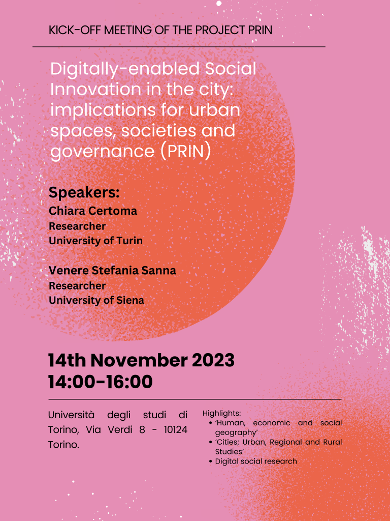 - Oct 2025 Finalised the results of the comparative analysis on the urban-social dimensions of DSI initiatives in Rome and Turin (here)