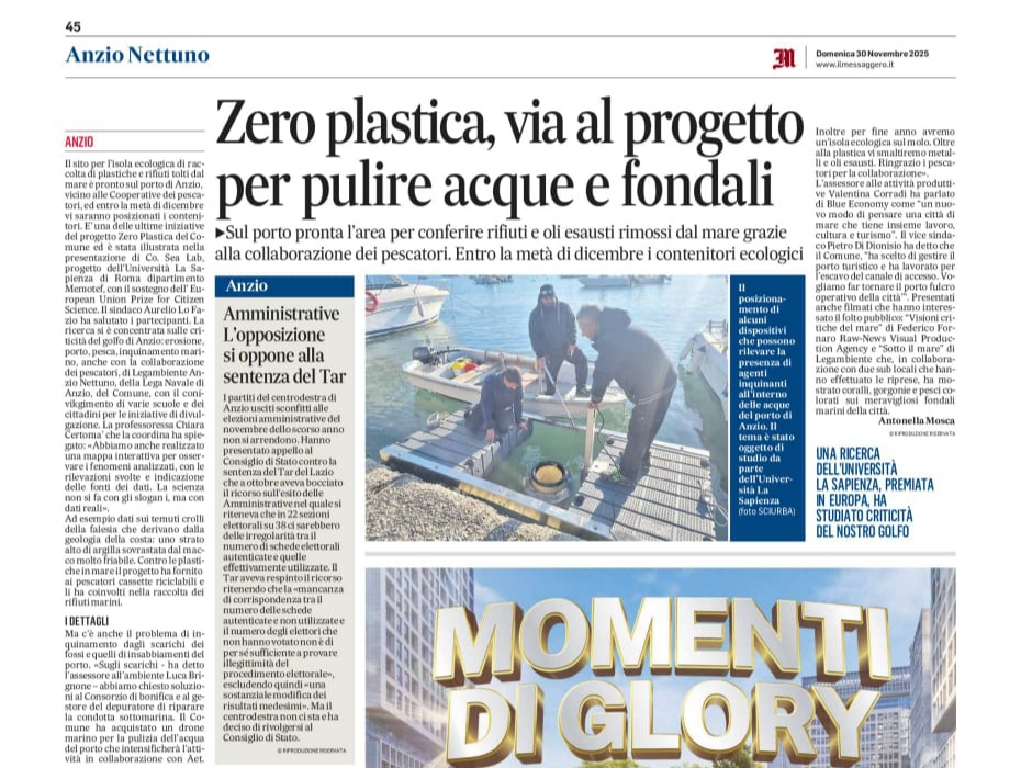 As part of the Blue Growth Operational Plan, the Lazio Region has approved and financed the implementation of the project “Zero Plastic. Integrated system for the collection of plastics in the sea and in the waters of the port of Anzio” proposed by the Municipality of Anzio in collaboration with Sapienza University of Rome – MEMOTEF Department and the British video-documentation company Raw-News and the Port Authority of Anzio. The project involves the use of a marine drone capable of collecting plastics and eliminating hydrocarbons from the sea surface, in addition to creating an ecological island for plastics collected by fishing boats and used oils.